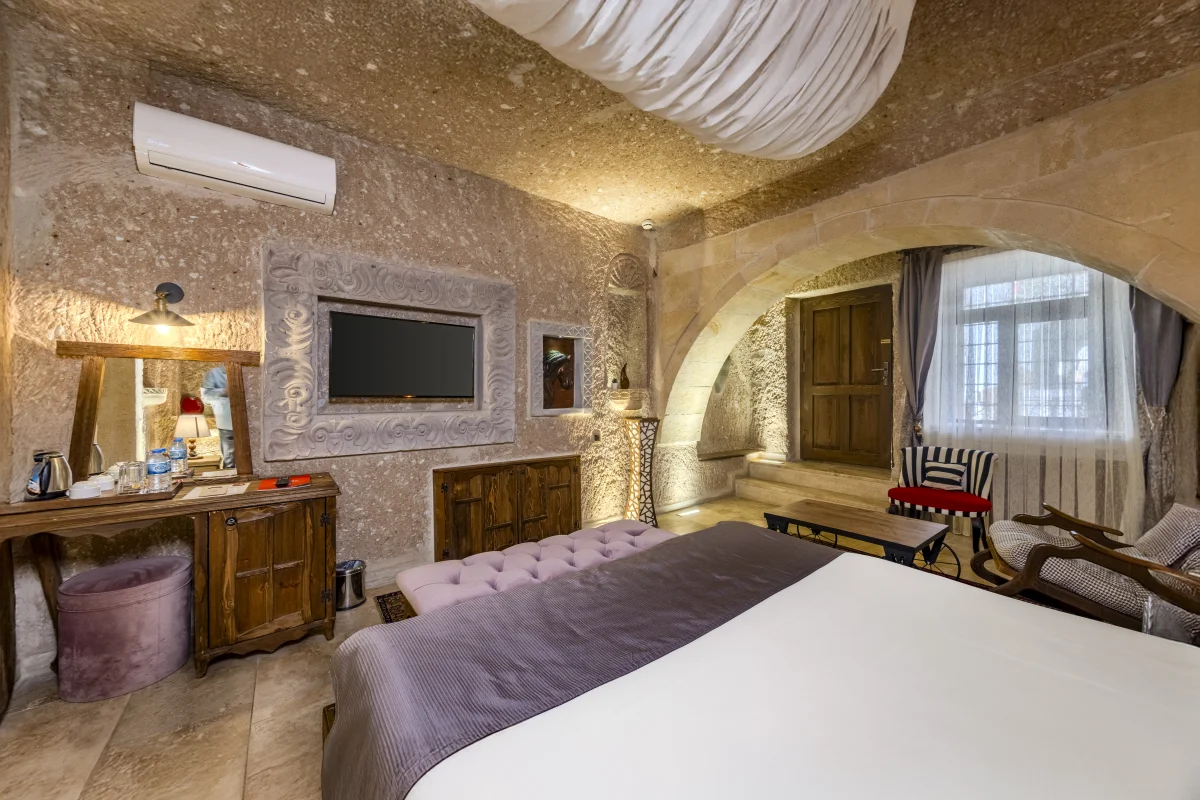 Bu oda, özellikle balayı çiftleri için romantizmin doruklarını yaşatmak amacıyla tasarlanmış büyüleyici bir mekandır. Tasarımında taşın sıcaklığı ile ahşabın zarafeti bir araya getirilerek rüya gibi bir atmosfer sunulmaktadır. Unutulmaz bir konaklama deneyimi için odada özel bir jakuzi bulunmaktadır.